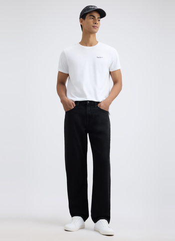 Men Black Relaxed Barrel Fit Mid Rise Jeans